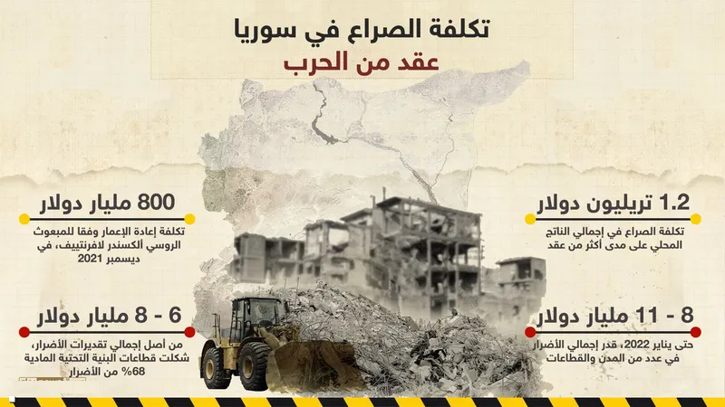 ووفقًا لتقديرات البنك الدولي في تقريره لعام 2021، قد تصل تكلفة إعادة الإعمار في سوريا إلى حوالي 400 مليار دولار أمريكي، وقد تزيد هذه التكلفة في حال تزايد الأضرار أو تعثر عملية الانتقال السياسي.